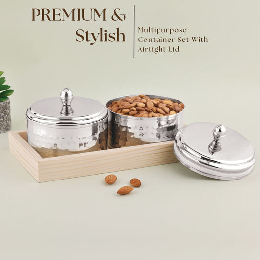 Dry Fruit Airtight Container 350ml- 2p With Wooden Tray