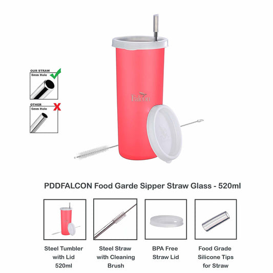 Pdd Falcon Steel Straw Glass 1pcs Pink - 520ml