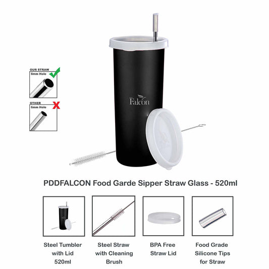 Pdd Falcon Steel Straw Glass 1pcs Black - 520ml