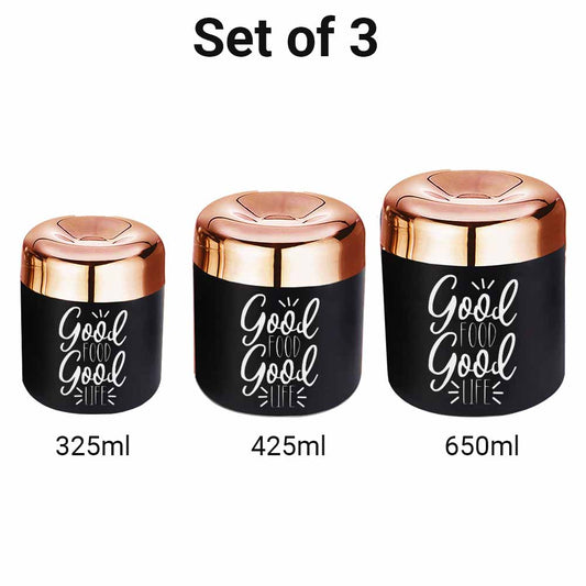Pdd Falcon Steel Utsaav Canister 750ml Set of 3 - Black, White & Brown