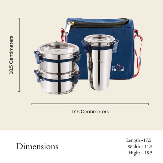 Pdd Falcon Steel Lunch Box Trio Blue FP25001 - 970ml