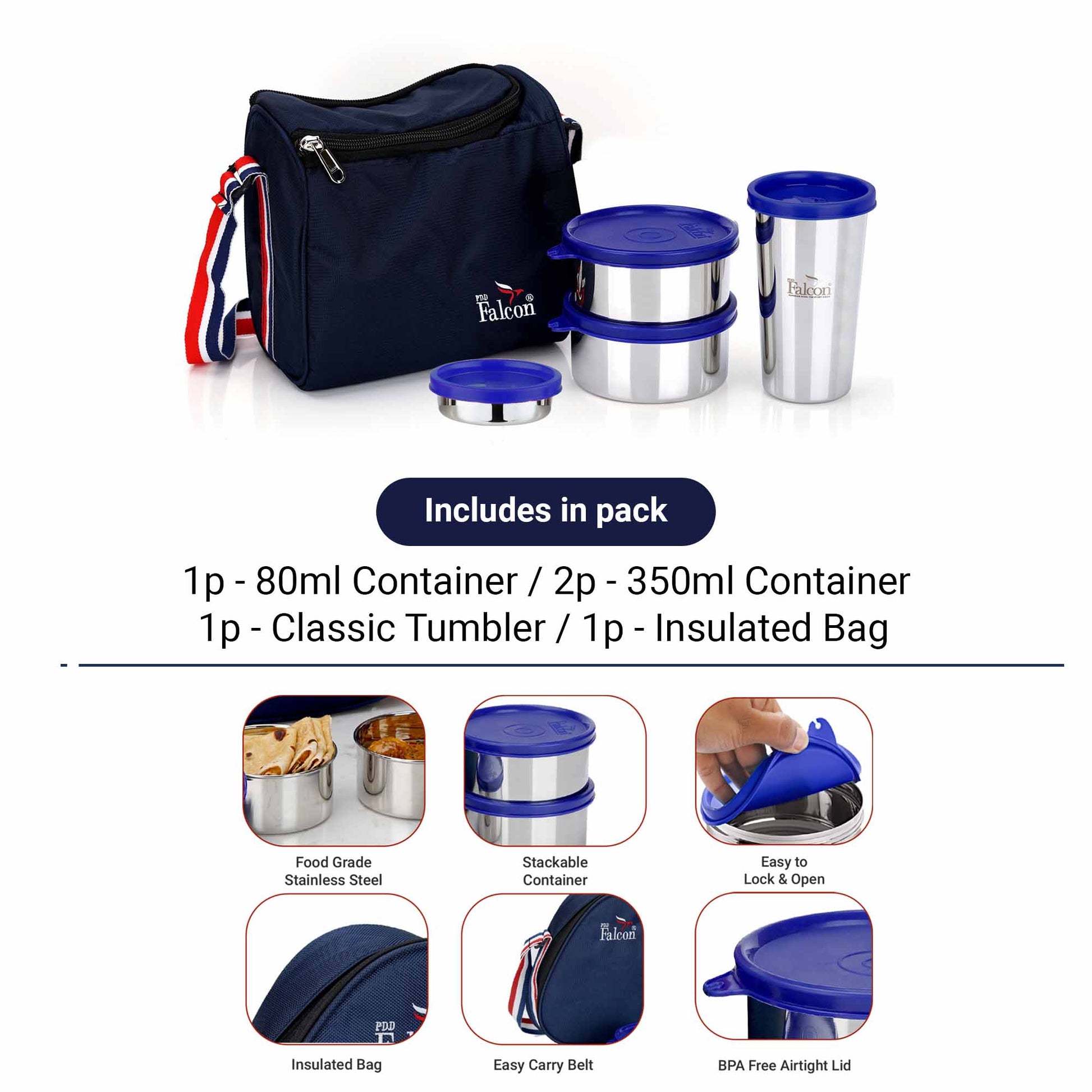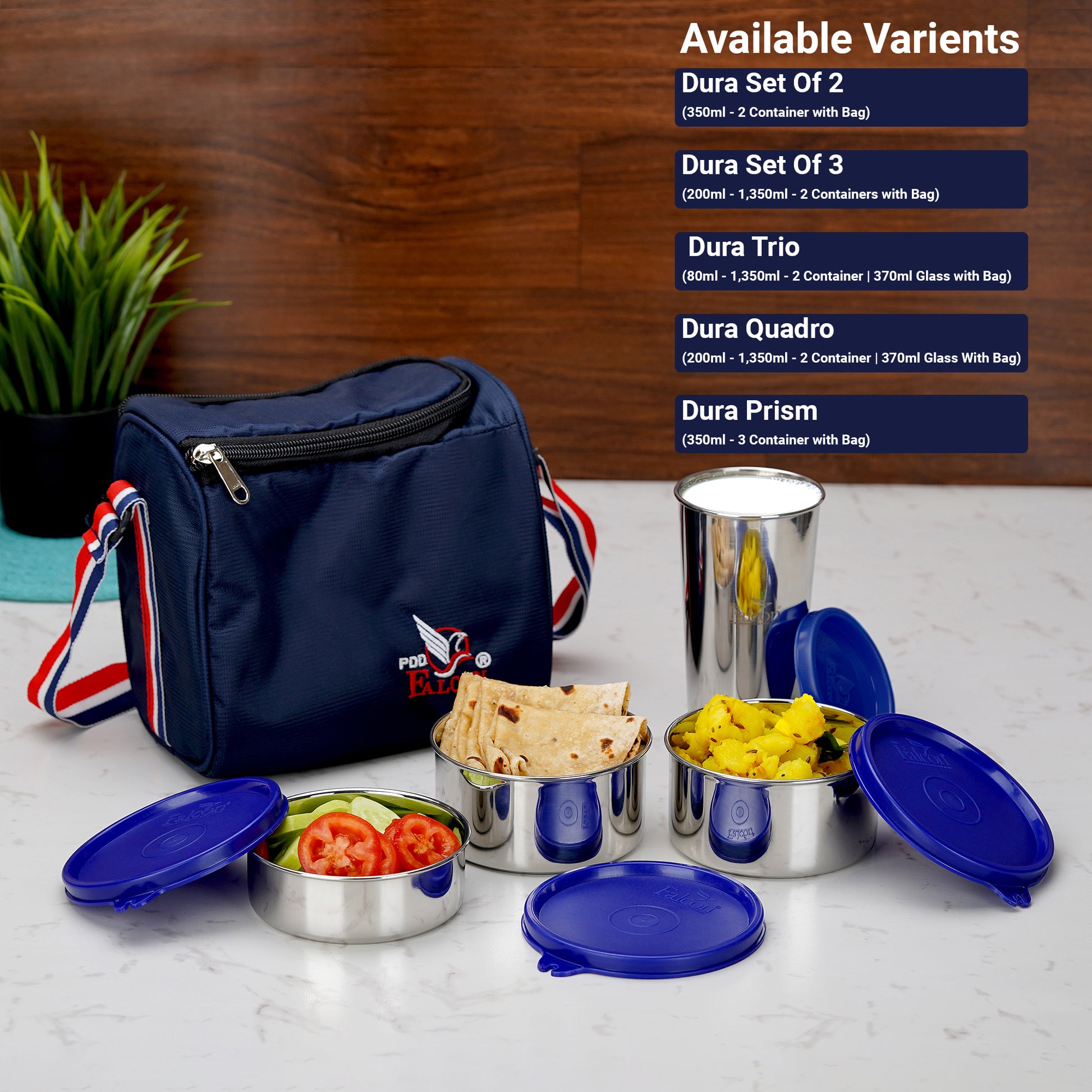 Pdd Falcon Steel Lunch Box Trio - 1150ml