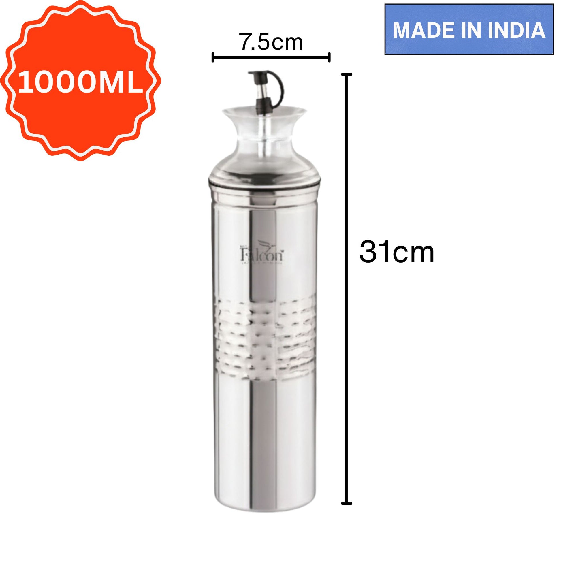 - Bring elegance and functionality to your kitchen with the Omega 1000ml Stainless Steel Oil Dispenser. BIS approved, Jindal Seal and Made in India is the perfect blend of style and durability. Made from premium food-grade stainless steel, this dispenser ensures your oils stay fresh, hygienic, and free from rust or odor.