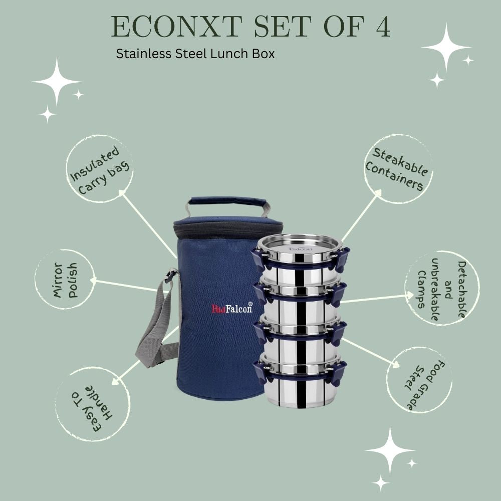 Pdd Falcon Steel Lunch Box Set of 4 Blue FP11009 - 1100ml
