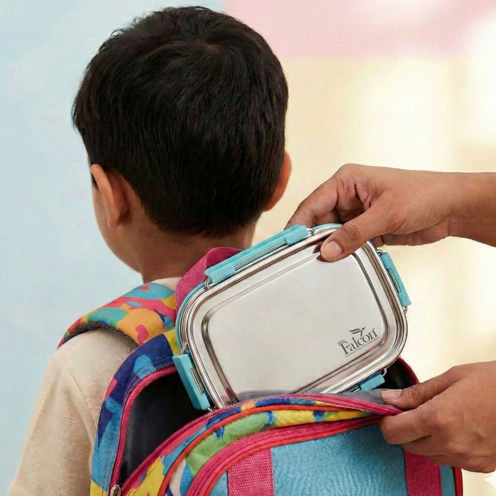 - PddFalcon Stainless Steel Recta Aries Lunch Box is a 100% leakproof and safe solution for school and kids. Made from food-grade SS 204 stainless steel, it is BPA-free, rust-free, and crack-free, ensuring long-lasting durability. It comes with a 180ml leakproof dabbi, perfect for carrying snacks or curries. The superior mirror polish keeps food fresh and maintains nutrients for longer hours. Dishwasher safe, freezer safe, eco-friendly, and easy to carry, use, and clean. Available in Sky Blue, Yellow, Turkish Blue, and Green—ideal for daily school meals and Office on-the-go use.
